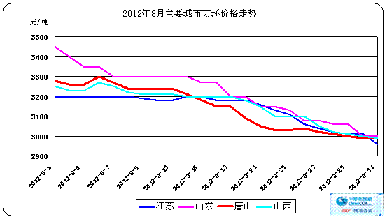 受下游出貨不暢影響,8月唐山鋼坯價(jià)格大幅下跌。目前唐山高爐開工率仍達(dá)到90%左右,雖較前期有所下降但仍處于高位,且有個(gè)別鋼廠計(jì)劃本月底投產(chǎn)新的高爐,市場整體鋼坯資源供應(yīng)量并未明顯減少,多數(shù)市場人士對(duì)后期市場仍然看跌。8月焦炭價(jià)格出現(xiàn)暴跌,累計(jì)跌幅達(dá)250元/噸。鋼廠檢修情況增多,對(duì)焦炭需求量縮減,紛紛繼續(xù)下調(diào)焦炭采購價(jià)格,焦企出貨阻力增加,多數(shù)焦企只能被動(dòng)的接受鋼廠降價(jià)。焦企加大限產(chǎn),預(yù)計(jì)后期焦炭市場跌勢難改但空間有限。8月廢鋼價(jià)格繼續(xù)下跌,幅度為50元/噸。由于鐵礦石價(jià)格降幅較大,鐵水成本下降明顯,鋼廠只能再度嘗試壓低廢鋼采購價(jià)格。近期廢鋼貿(mào)易商多持觀望態(tài)度,鋼廠廢鋼到貨情況多不理想,短期廢鋼價(jià)格仍將弱勢整理。