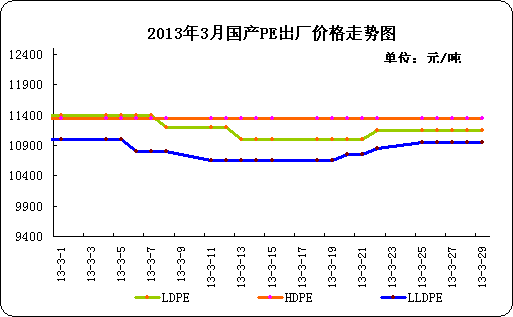 1.2 2013年3月國(guó)內(nèi)PE出廠價(jià)格走勢(shì)圖